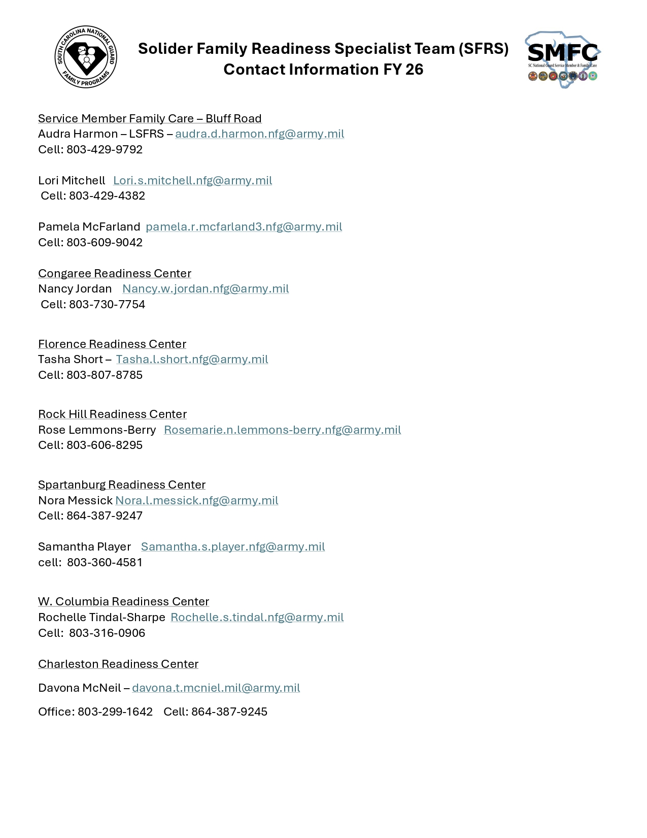 • Family Readiness Specialists (SFRS/AFR)